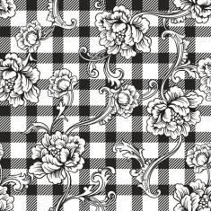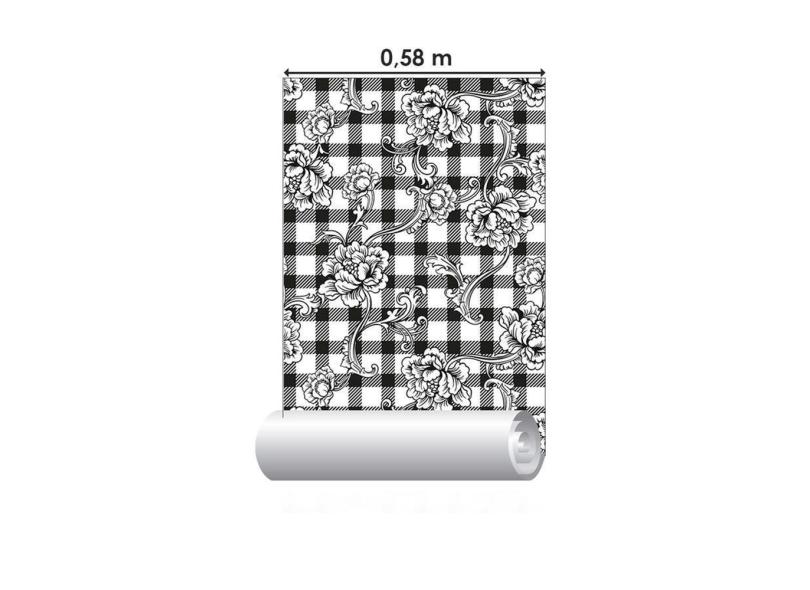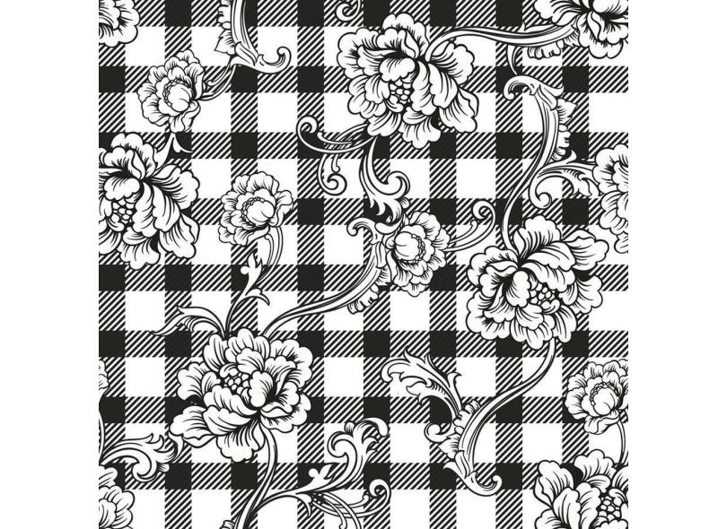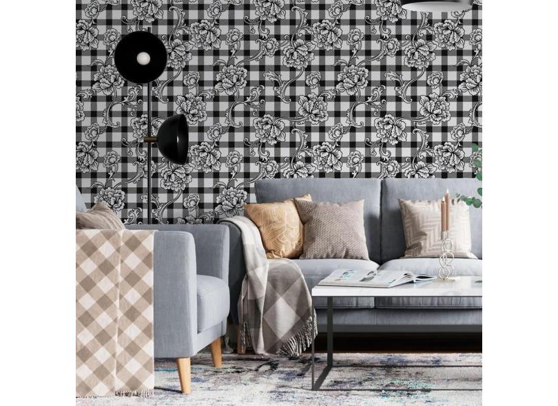 Papel De Parede Adesivo Xadrez Com Flores N06042 Rl 0,58X3M