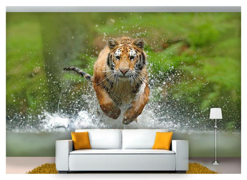 Papel De Parede Animais Tigre Correndo Rio 3D Anm237