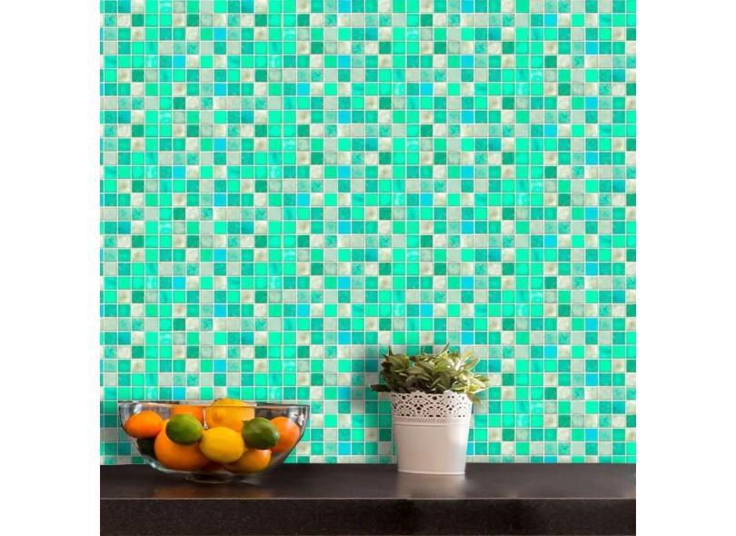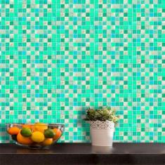 Papel de Parede Auto Adesivo Lavável Pastilha Pa0025 Verde Agua