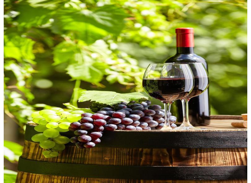 Papel De Parede Barril Vinho Cacho De Uva 3D Al237