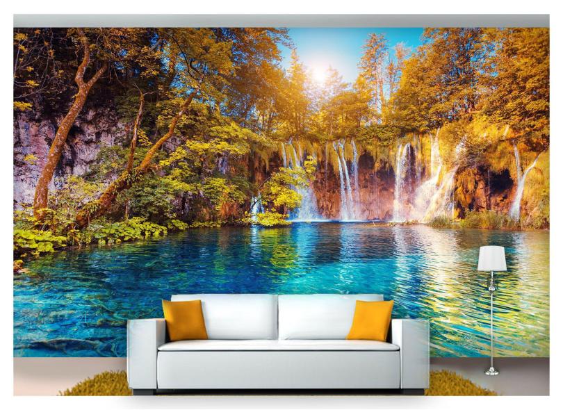Papel De Parede Cachoeira Natureza Céu Sol 3D Nch165