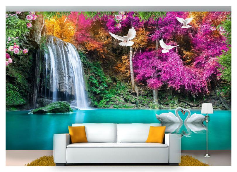 Papel De Parede Cachoeiras Animais Pássaros 3D Xch06 3M²