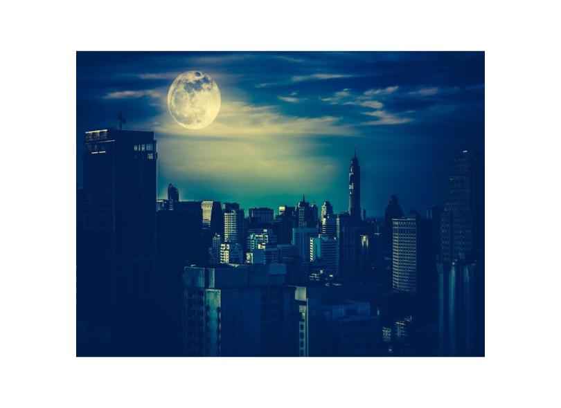 Papel De Parede Cidade Prédios Noite Lua 3D 6M² Ncd201