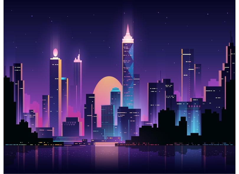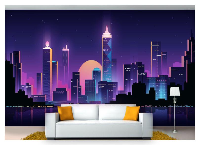Papel De Parede Cidade Prédios Retrô Wave 3D Ncd232