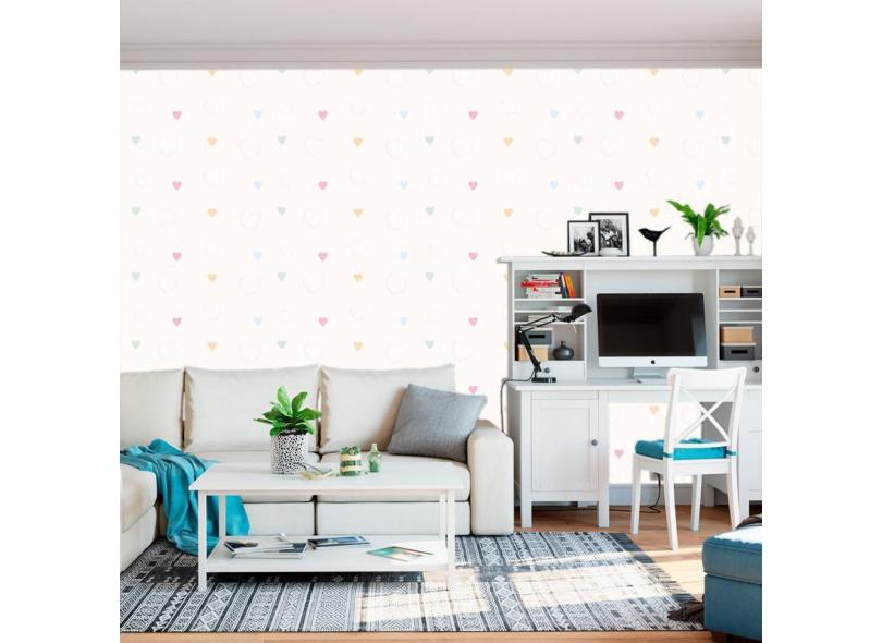 Papel De Parede Com Corações Coloridos Adesivo Quarto