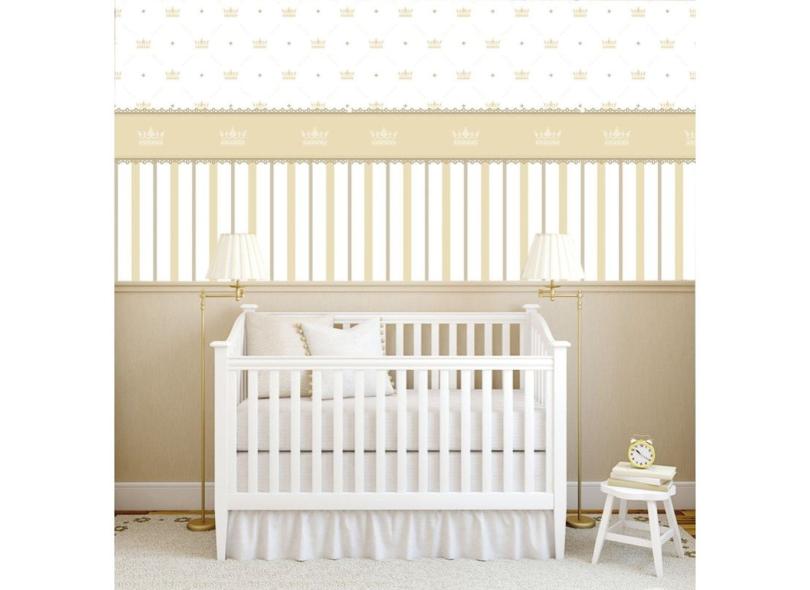 O menor preço encontrado no Brasil para Papel De Parede Coroas E Listra Douras Quarto Bebê Infantil atualmente é R$ 48,19.