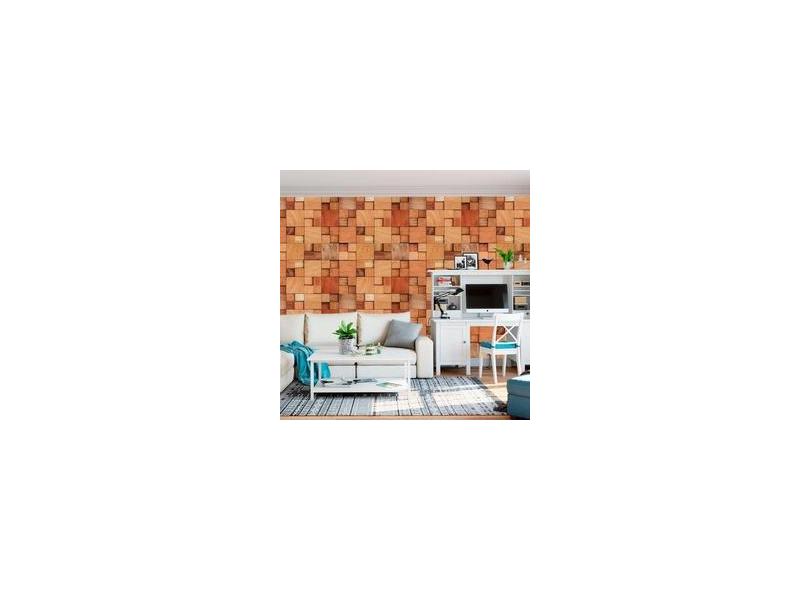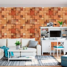 Papel De Parede Cubos Madeira Mogno Claro Autocolante Sala