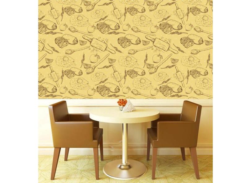 Papel De Parede Desenhos Ovos E Pães Adesivo Lavável