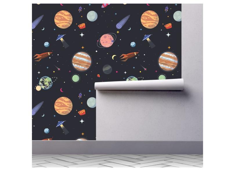 Papel de parede espaço planetas foguete estrelas infantil A141