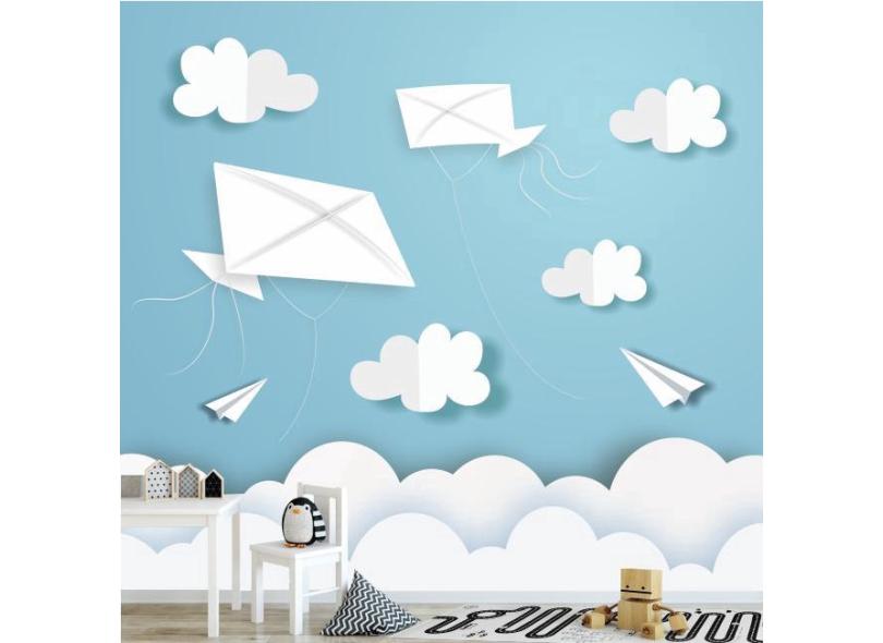 Papel De Parede Infantil Céu Nuvem Pipa Avião De Papel Gg720