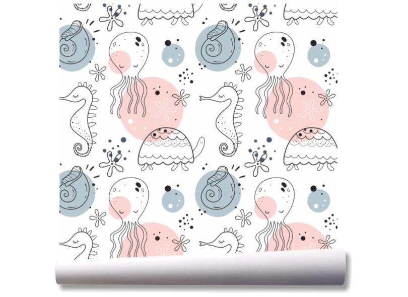 Papel de parede infantil fundo do mar peixes polvo tartaruga A86