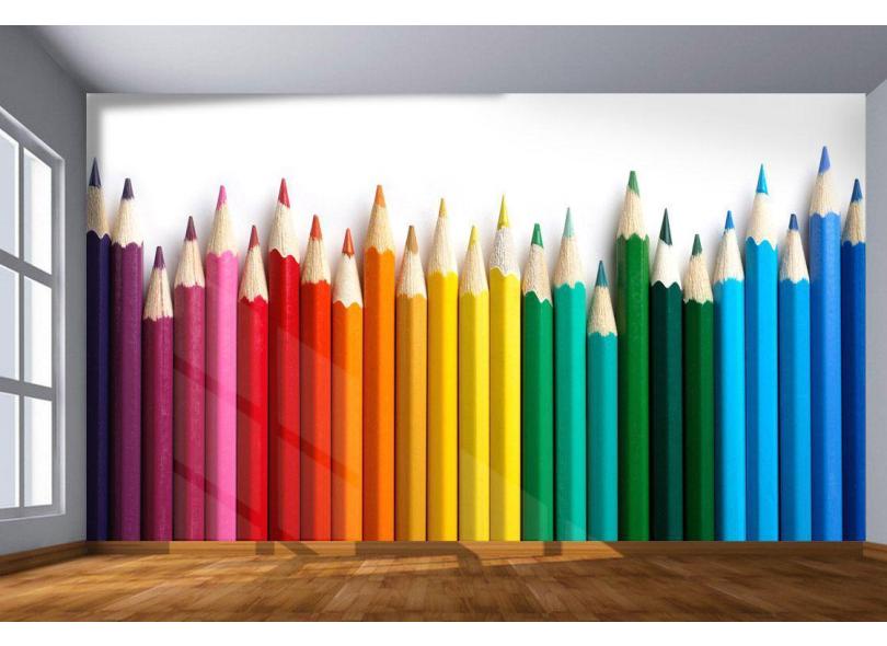 Papel De Parede Infantil Lápis De Cor Escola Azs102