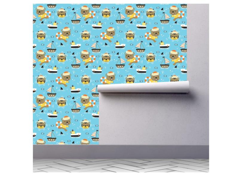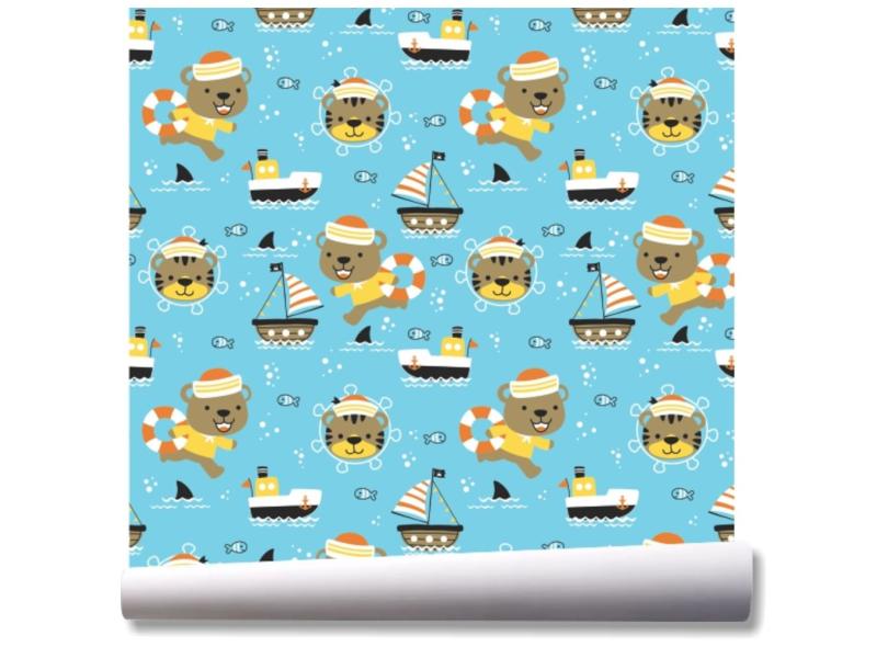 Papel de parede infantil marinheiro ursinho náutico barcos A149
