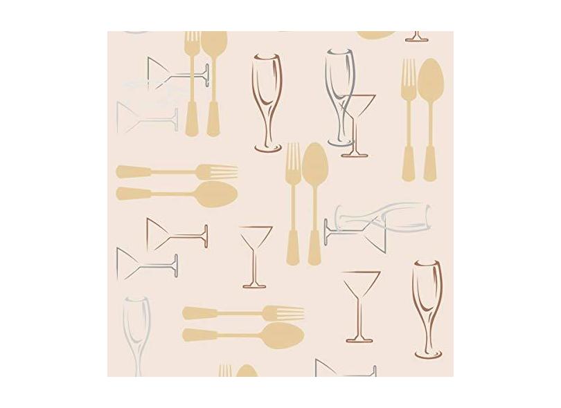 Papel De Parede Lavável Talheres E Taças Marrom 12M