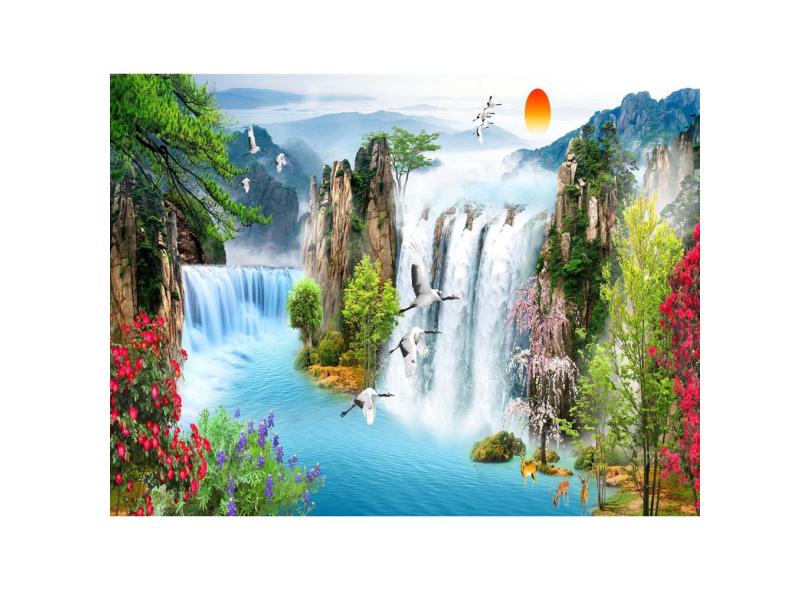Papel De Parede Paisagem Digital Cachoeira Sol Dah58