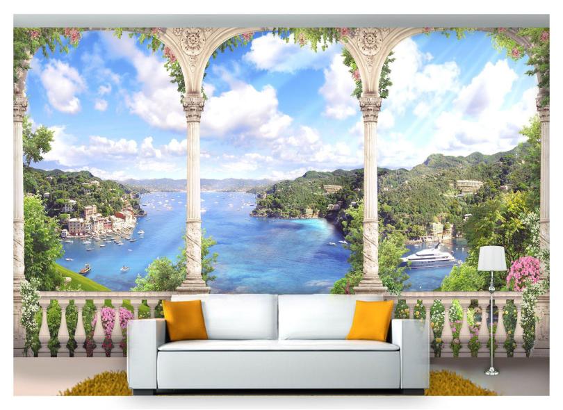Papel De Parede Paisagem Digital Jardim Mar 3D Dah37