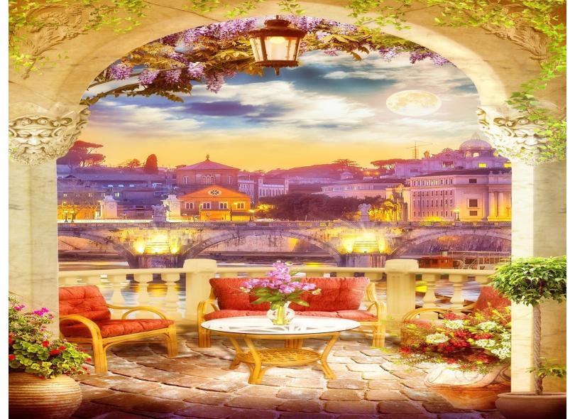 Papel De Parede Paisagem Varanda Noite Flores Dav48
