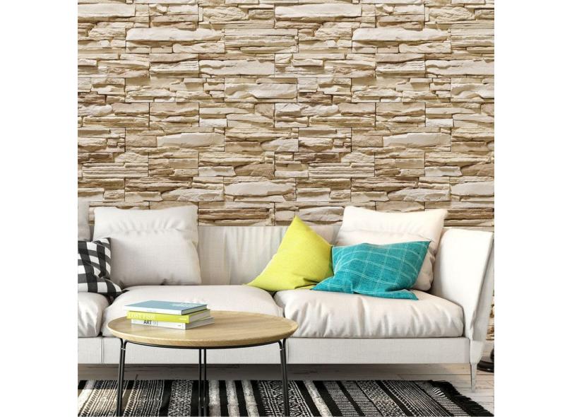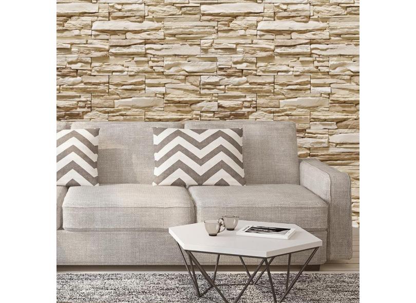 Papel De Parede Pedra Tijolos Areia Fina Autocolante Sala