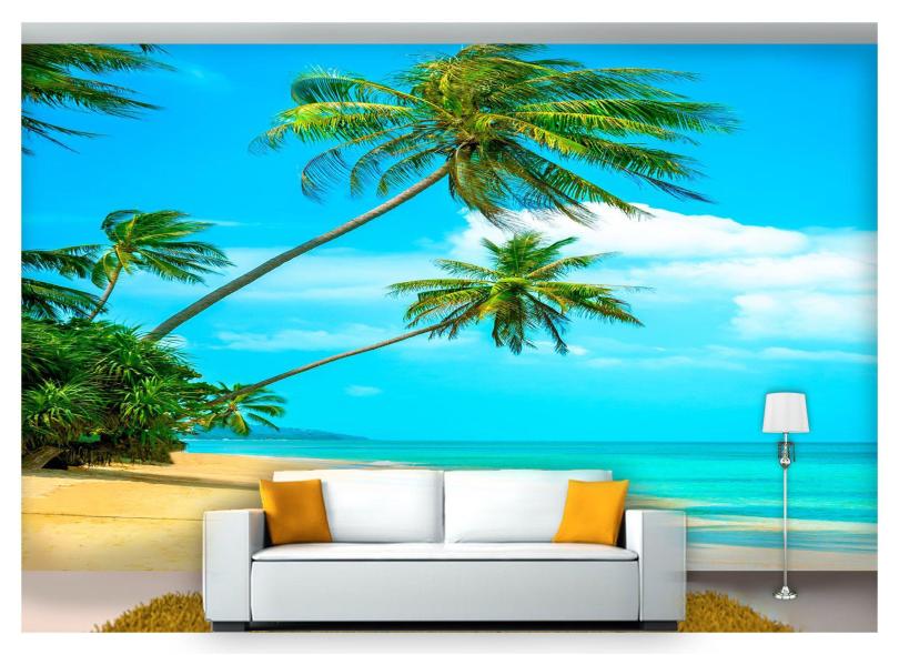 Papel De Parede Praia Mar Coqueiros Céu 3D Npr207