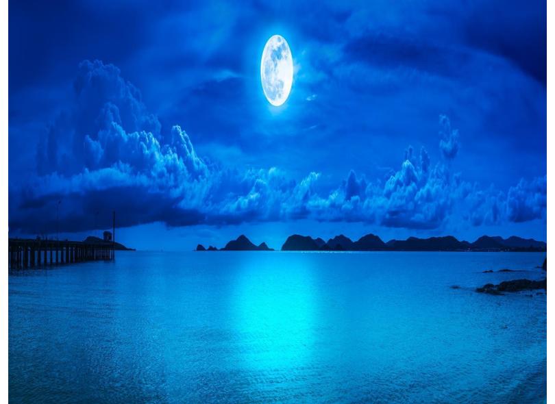 Papel De Parede Praia Mar Lua Cheia Céu 3D Npr225