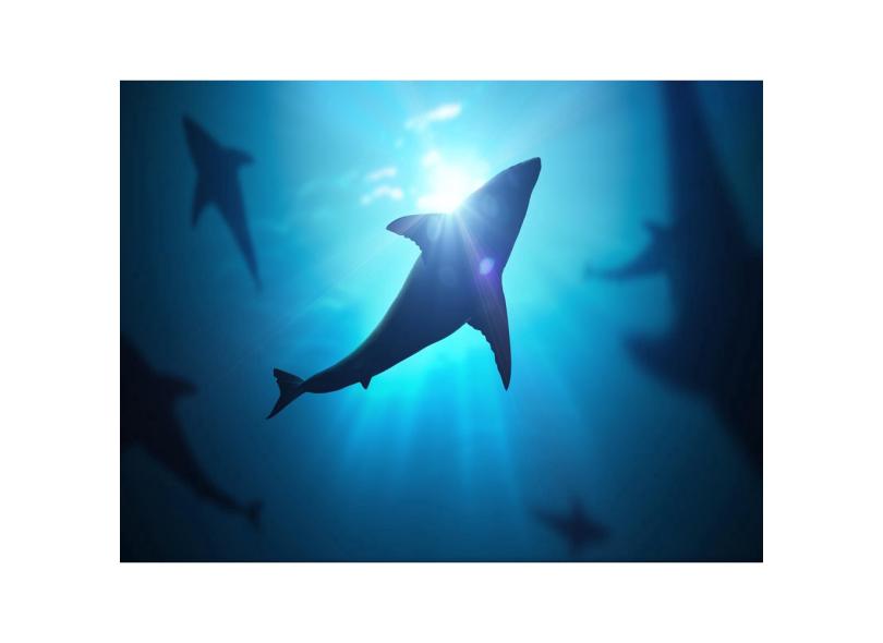 Papel De Parede Vida Marinha Tubarões Mar 3D Fm110