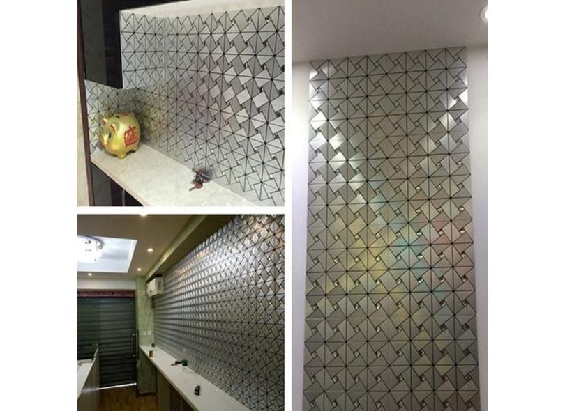 Placa Adesiva Papel Parede Prata 3d Pastilha Cozinha Sala