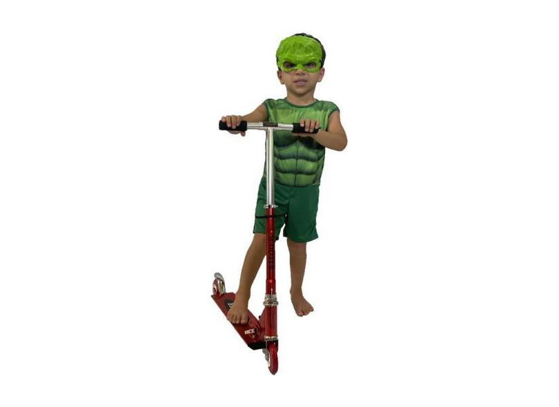 Patinete 2 Rodas Dobrável Alumínio Vermelho + Fantasia Hulk - Dm Toys