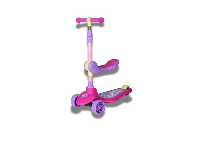 Patinete 3 Rodas 2 Em 1 Com Assento Rosa Claro E Lilás - Uni Toys