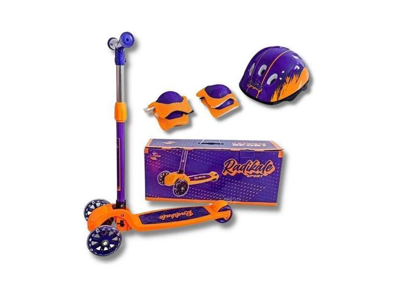 Patinete 3 Rodas Led Kit Proteção Infantil Radikale Unitoys