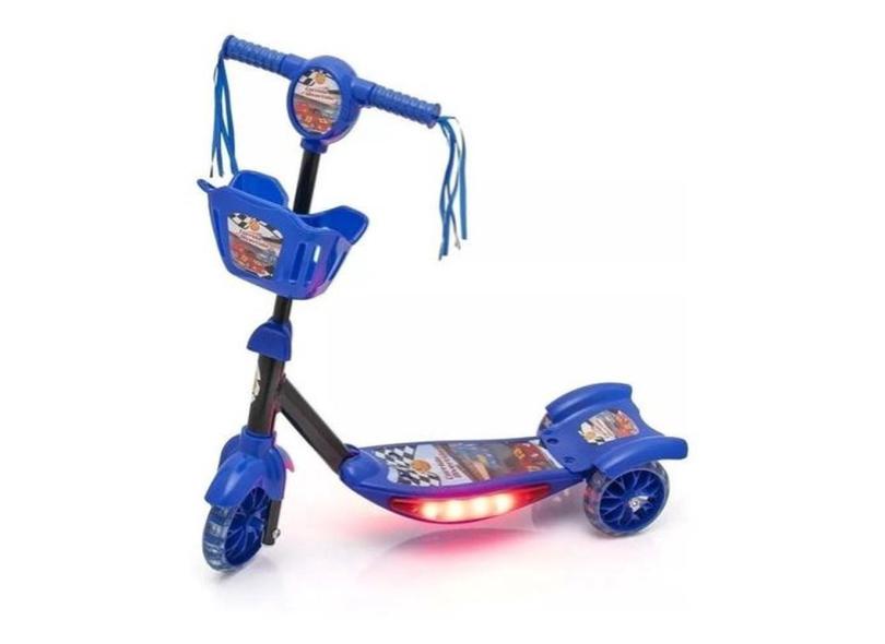 Patinete Corrida Divertida Azul Com Cesta Luz E Som Dm Toys