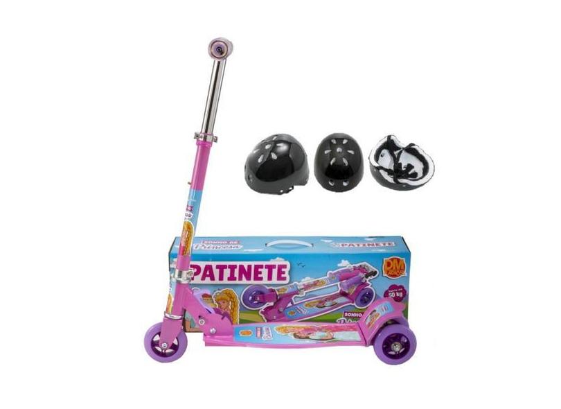 Patinete De Menina Grande Rosa Regula Altura Mais Capacete - Dm Toys