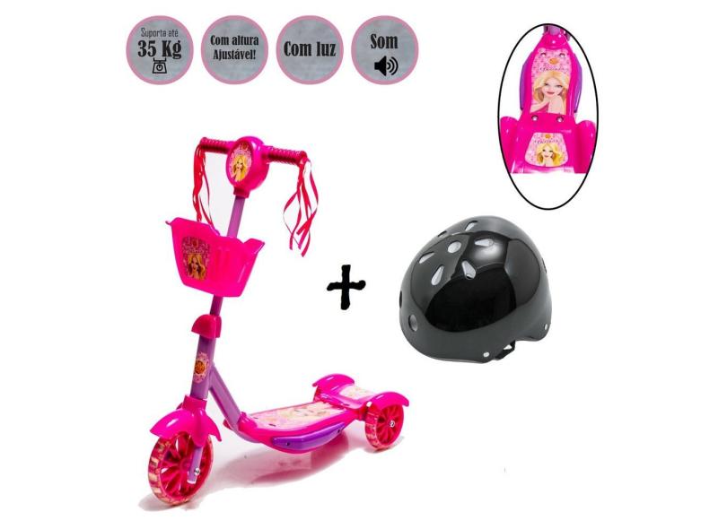 Patinete Dm Toys Com Luz Som Movimento Rosa E Capacete
