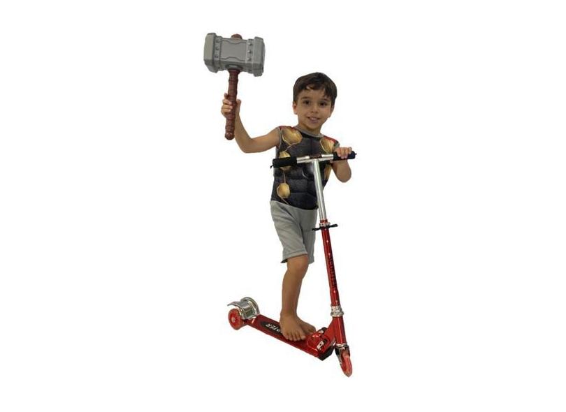 Patinete Infantil Dobrável 3 Rodas Alumínio + Fantasia Thor - Dm Toys