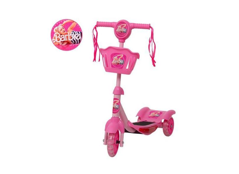 Patinete Infantil Rosa Barbie Regulável Cesta Suporta 20Kg - Toys 2U