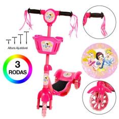 Patinete Infantil Rosa da Princesas 3 Rodas Com Led/Som