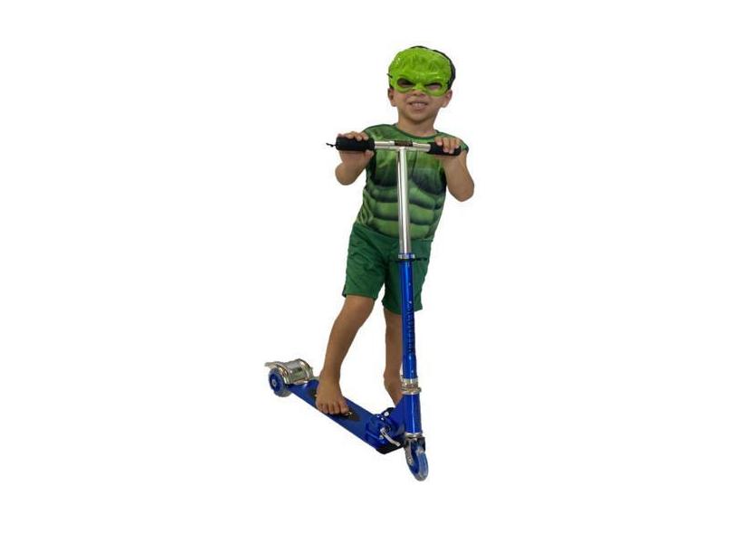 Patinete Radical Dobrável Aluminio 3 Rodas + Fantasia Hulk - Dm Toys