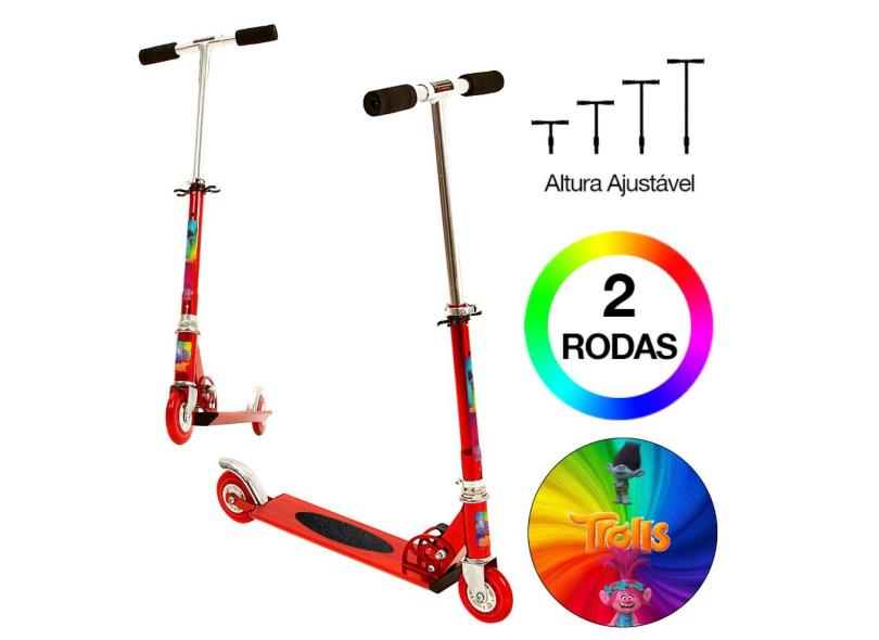 Patinete Scooter Filme Trolls Infantil Vermelho de Alumínio