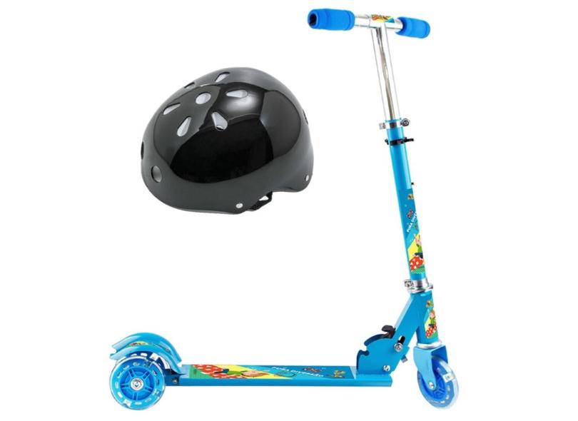 Patinete Veloz 3 Roda Led Menino Radical + Capacete Infantil