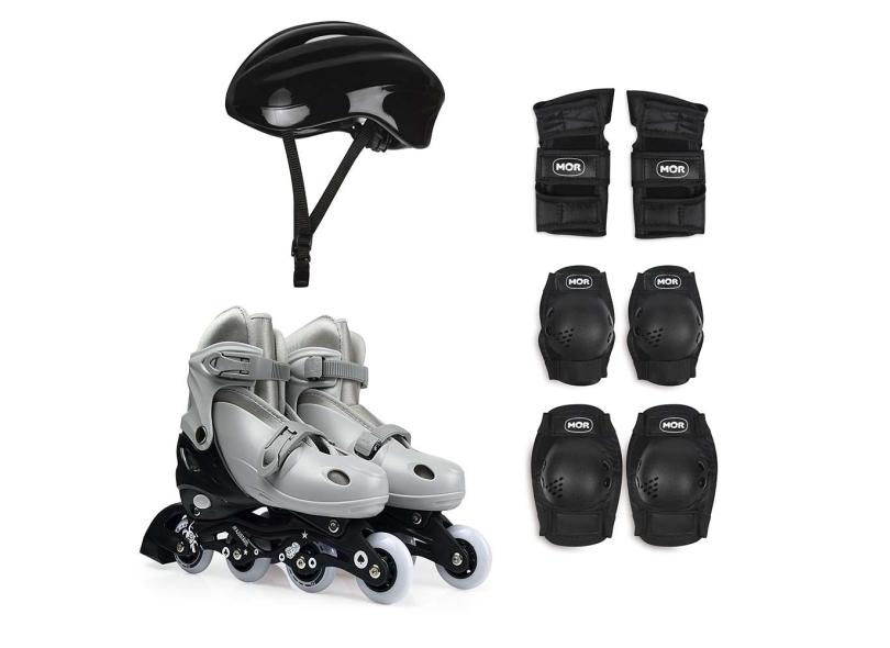 Mor Kit Patins Roller Infantil E Proteção Com Capacete Joelheira Cotoveleira