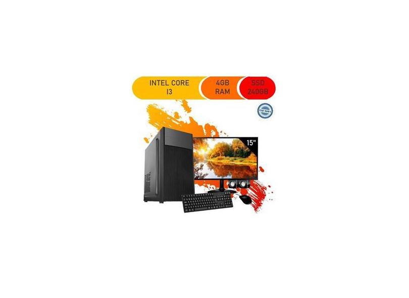 Computador Completo Icc Intel Core I3 4Gb Hd 240Gb Ssd Dvdrw Monitor 15 Windows 10