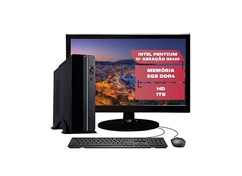 Computador Completo Slim Intel Pentium 10ª Geração G6400 8GB DDR4 HD 1TB Monitor 15" HDMI Skill Premiere