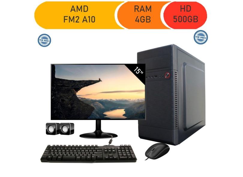 Computador Corporate Processador Amd Fm2 A10 4gb de Ram Hd 500gb Kit Multimídia Monitor 15 Windows 1