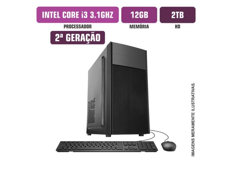 Computador Flex Computer Intel Core I3-2100 12GB HD 2Tb Com Kit Windows 10