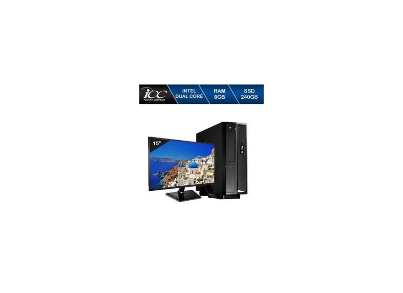 Mini Computador Icc Sl1887dm15 Intel Dual Core 8gb HD 240gb Ssd Dvdrw Monitor 15 Windows 10