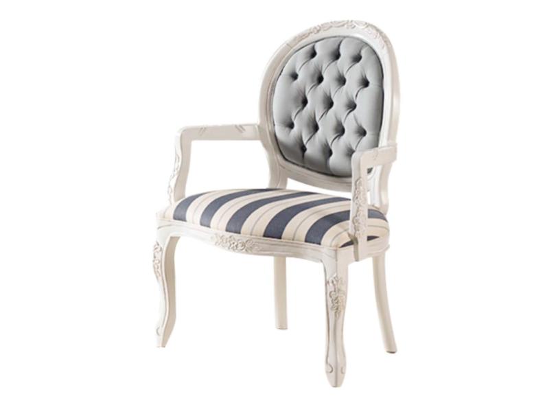 Poltrona Imperial Provençal Encosto Capitonê e Assento Listrado