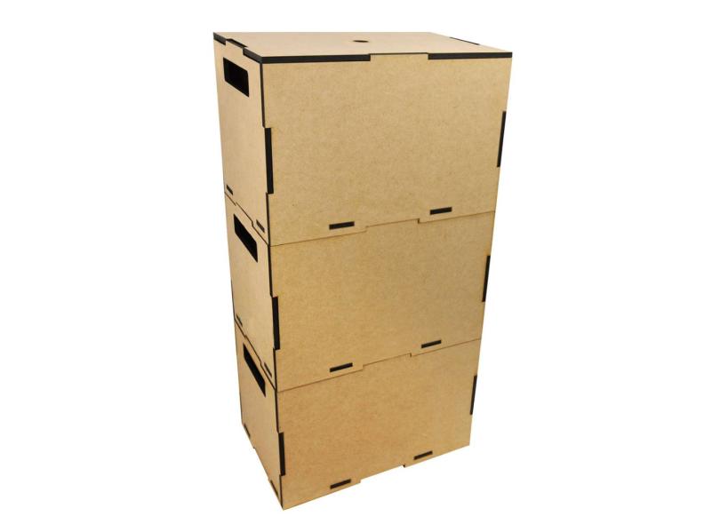 Caixa Organizadora Retangular de Encaixe Para Empilhar Com Alça 30x20x20 Laser Mdf 6mm Madeira