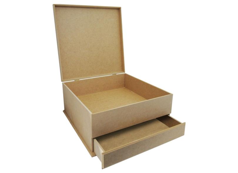 Caixa Quadrada Com Gaveta e Tampa Dobradiça 40x40x19 Mdf 6mm Madeira