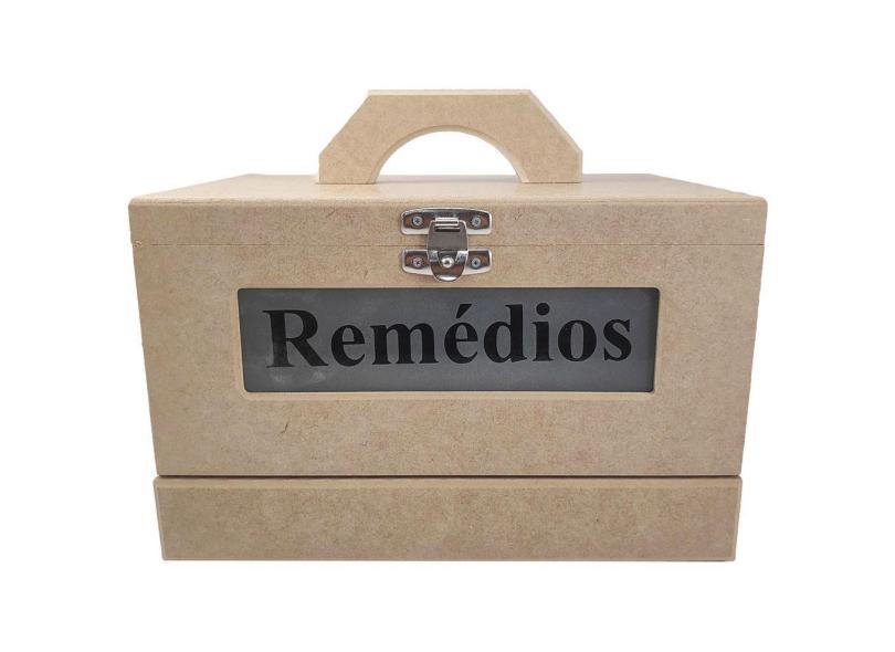 Caixa Remédios Medicamentos Vidro Jateado Fecho Alça Mdf
