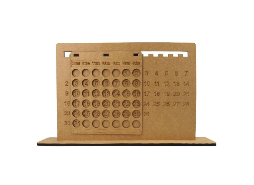 Enfeite de Mesa em MDF Calendário Perpétuo Retangular 22,7x12,7cm - Palácio da Arte