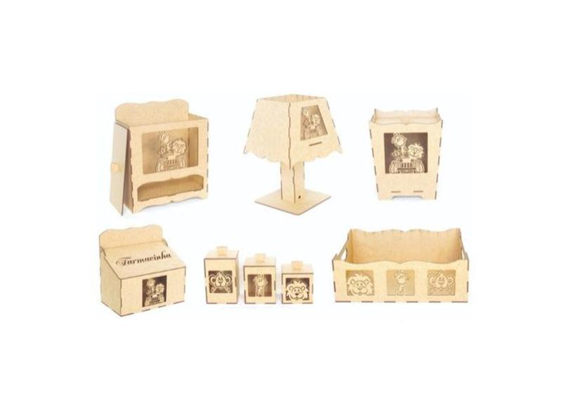 Kit Higiene Bebê Safari Mdf Cru 8 Peças Promoção Novidade